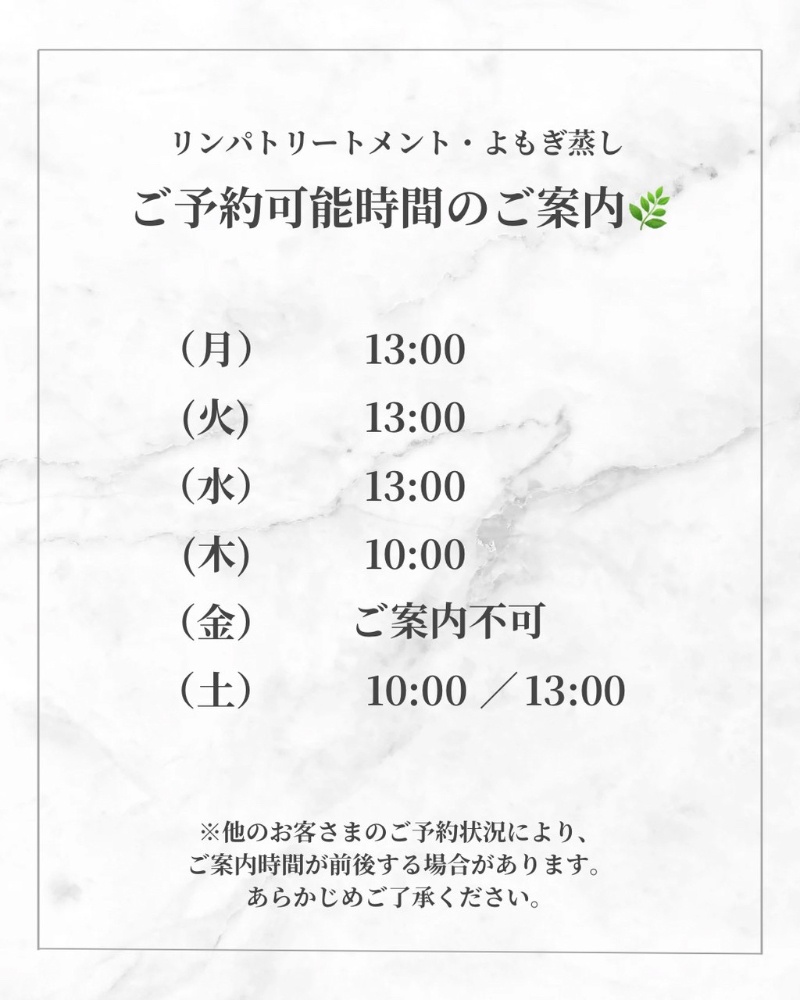 リンパ・よもぎ蒸しメニュー