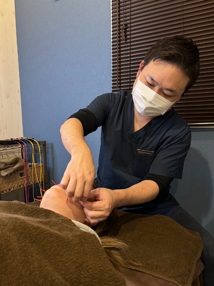 繊細な表情筋のバランスが崩れないように、1部の筋だけに対して電気を流す、電気を流す美容鍼や、肌のバリア機能を守るため肌表面にテープ状の鍼を貼る施術方法は行いません。