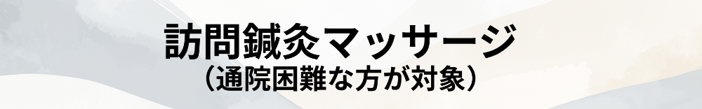 身体の都合等によりお一人での通院が困難な方が対象で、ご自宅や介護施設等に訪問施術に伺います。健康保険適用での治療は医師の同意書が必要です。保険施術について、詳しくはお問い合わせください。