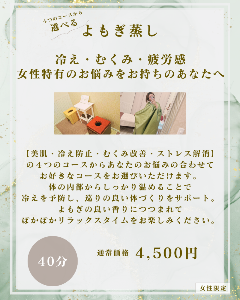 よもぎ蒸しには、女性にうれしいさまざまな効果があります。